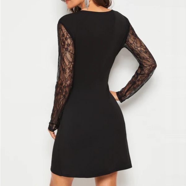 like lace spliced long sleeve,v-neck and irregular hem design make this piece look so sexy and flirty.