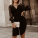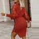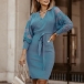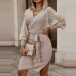 You can easily gain more eyes when you go out with this knit dress. The lace spliced long sleeve,v-neck and slit hem design make this piece look so sexy and alluring,while the fit silhouette and tie-belt design can better showcase your slender figure. A good choice for you in these spring and autumn days.