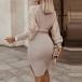 Sexy Lace Spliced Long Sleeve V-neck Slit Hem Tie-belt Slim Fit Knit Dress