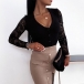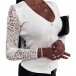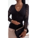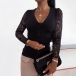 Sexy Lace Spliced Long Sleeve V-neck Solid Color T-shirt