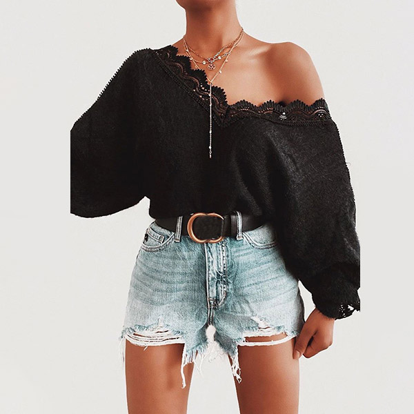 You can catch the envious eye of everyone in the room when you wear this wonderful top. The v-neck and lace spliced details make this piece look so sexy and flirty. You can trust in this piece to help enhance your charm.