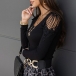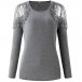 Sexy Lace Spliced Off-shoulder Long Sleeve Round Neck Solid Color Top