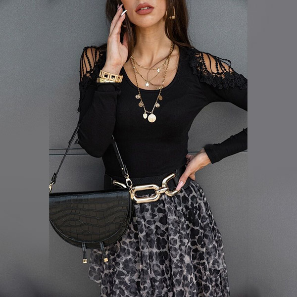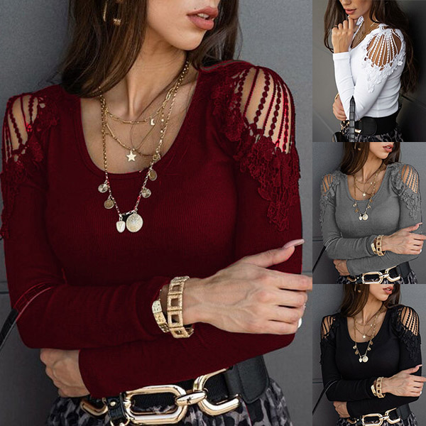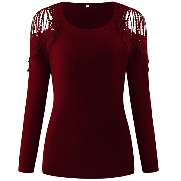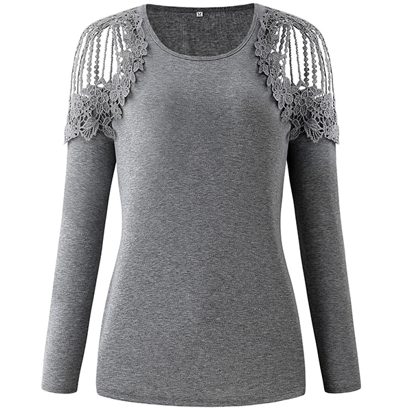 Attracted by this chic top at your first sight? Then don't miss it! Solid color style,the off-shoulder and lace spliced details at the shoulder part will lend you a dash of sexy and flirty vibes. Finished with long sleeve,round neck and a clean,fit silhouette,this piece also can be matched with different style bottoms.