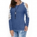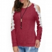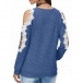 Sexy Lace Spliced Off-shoulder Long Sleeve Round Neck Sweatshirt