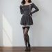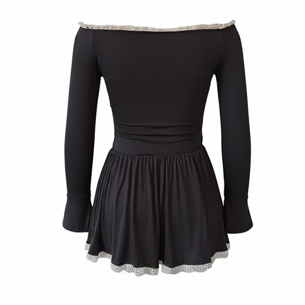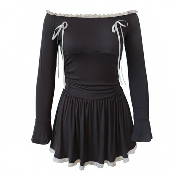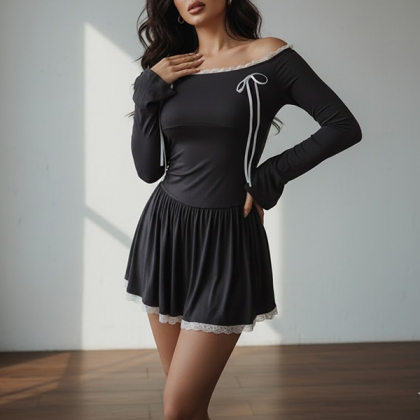 Sexy Lace Spliced Off-the-shoulder Bowknot Long Sleeve Mini Dress