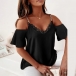 Sexy Lace Spliced Open-shoulder Short Sleeve Chain Cami Shirt