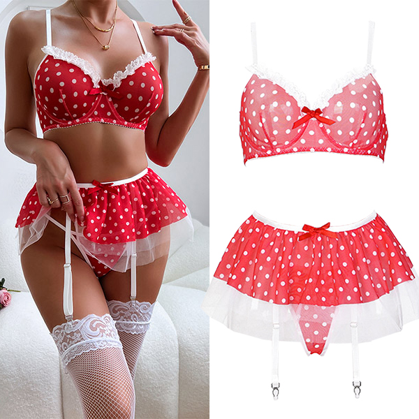 Sexy Lace Spliced Polka Dot Printed Tutu Two-piece Lingerie Set