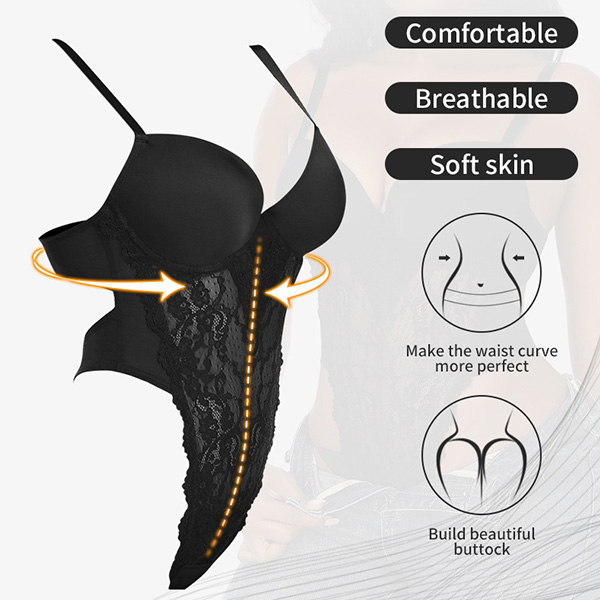 Sexy Lace Spliced Push-up Slim Fit Bodysuit