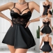 Sexy Lace Spliced Rhinestone Heart Ring Nightwear Dress