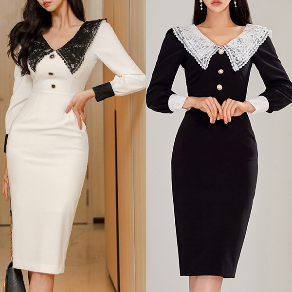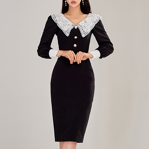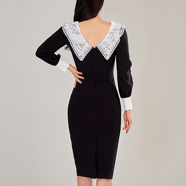 Designed with a classic yet flattering black tone,the lace spliced ruffle collar and fit silhouette design will further enhance your feminine appeal while making you a trendsetter. When invited to a weekend gathering or night dating,you can just slip into this dress to express your beauty and femininity!