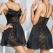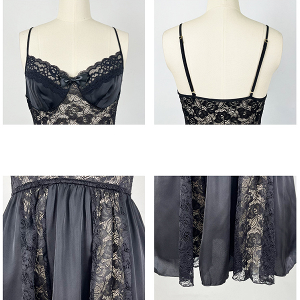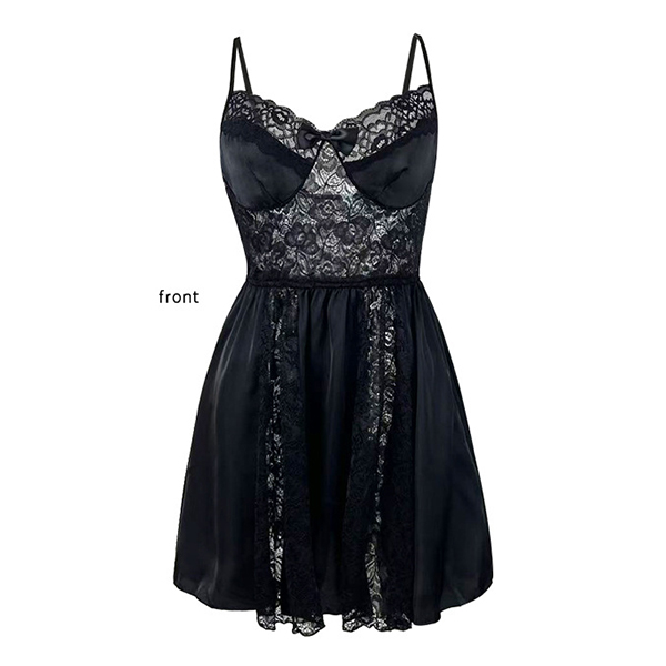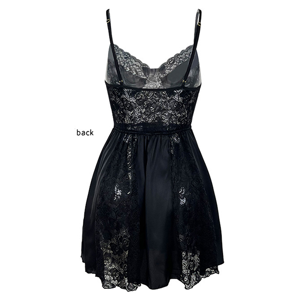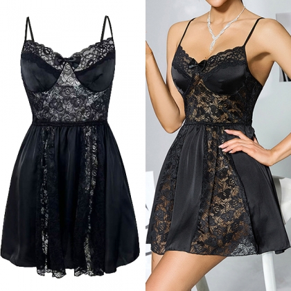 Sexy Lace Spliced Satin V-neck Bowknot Backless Nightwear Dress