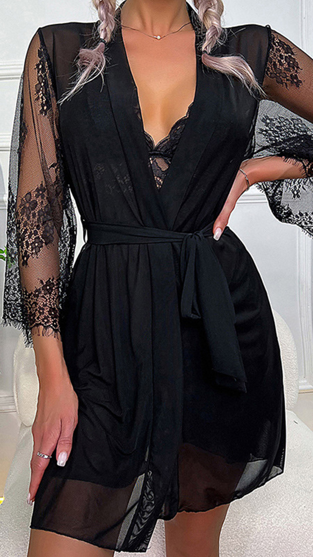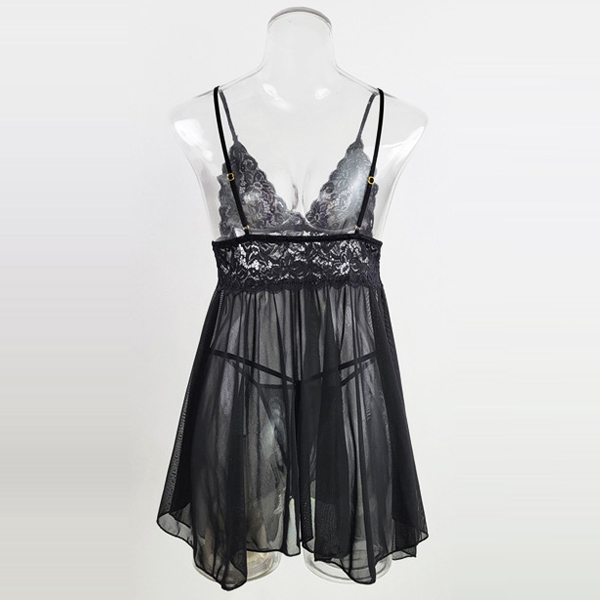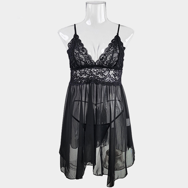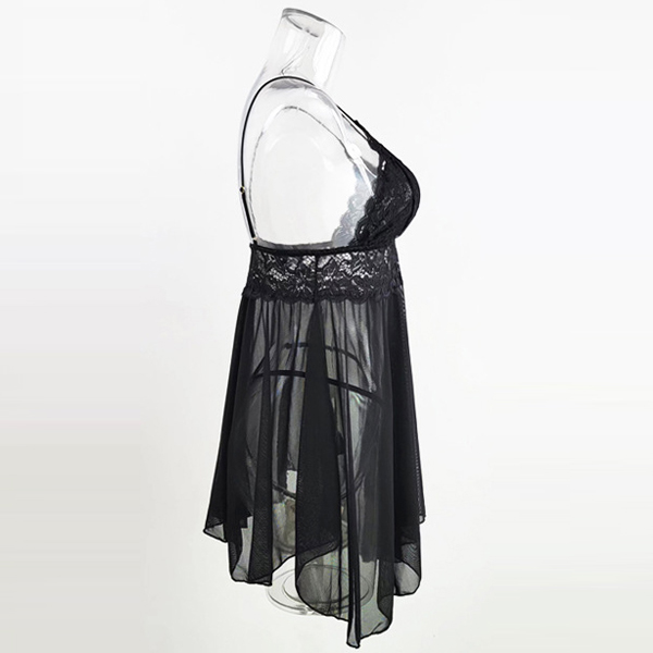 Sexy Lace Spliced Self-tie Nightgown