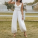 Sexy Lace Spliced Self-tie V-neck Backless Loose Jumpsuit