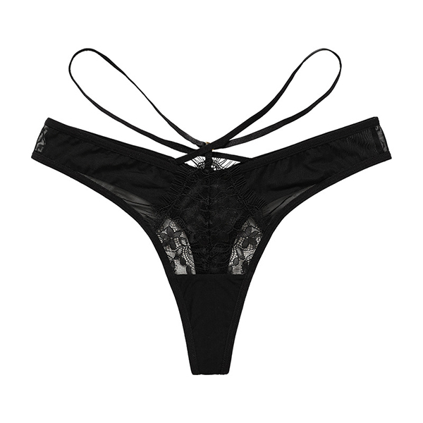 Sexy Lace Spliced Semi-through Gauze Cutout Panties