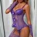 Sexy Lace Spliced Semi-through Gauze Lingerie Bodysuit