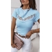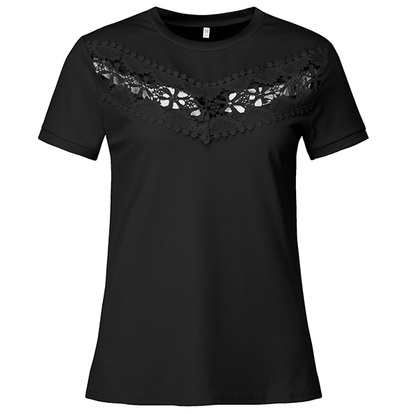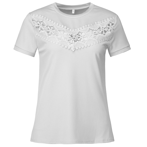 Sexy Lace Spliced Short Sleeve Ribbed Shirt