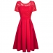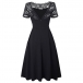 Sexy Lace Spliced Short Sleeve Round Neck High Waist Dress