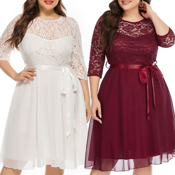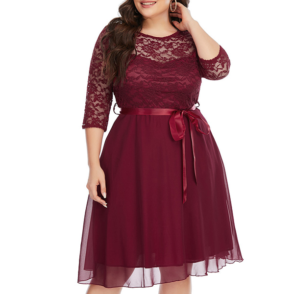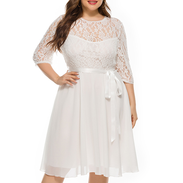 Sexy Lace Spliced Short Sleeve Round Neck Plus-size Dress