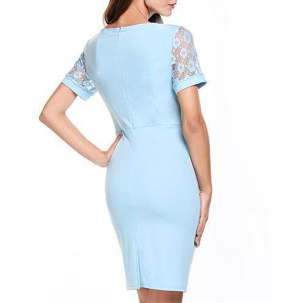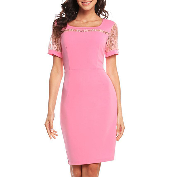 Sexy Lace Spliced Short Sleeve Square Collar Slim Fit Dress