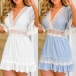 Sexy Lace Spliced Short Sleeve V-neck High Waist Dress