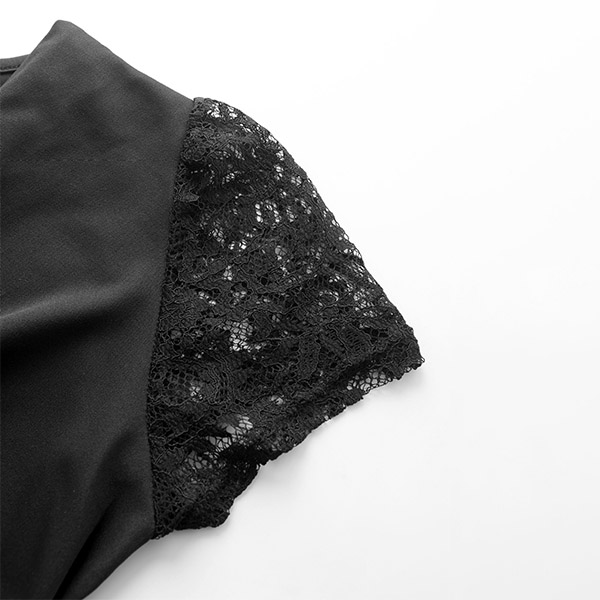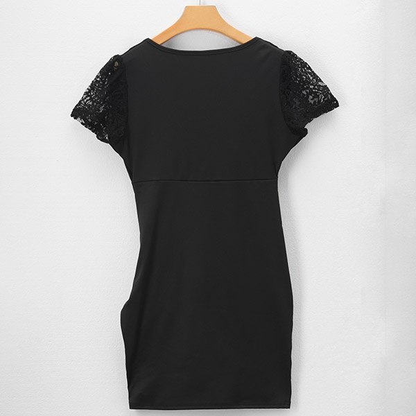 Exhibit your incredible style sense with this beautiful dress. The deep v-neck and lace spliced short sleeve design can enhance your feminine appeal. Finished with high waist,an irregular hem and a fit silhouette,this dress is a good weapon to portray your seductive curve. So why not save this piece for some formal occasions?