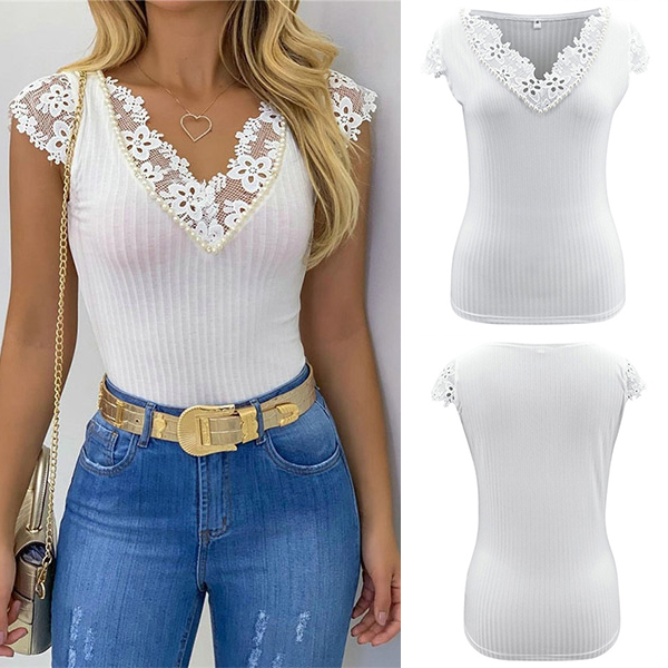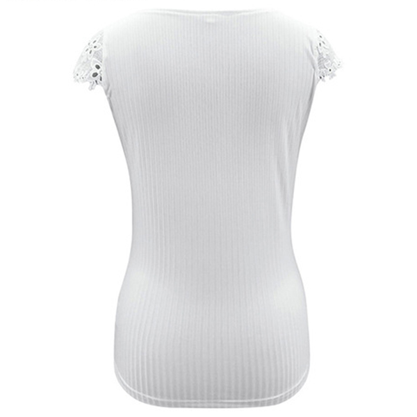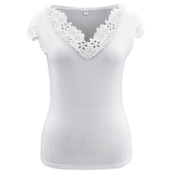 Sexy Lace Spliced Short Sleeve V-neck SLim Fit T-shirt