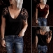 Sexy Lace Spliced Short Sleeve V-neck Solid Color T-shirt