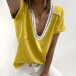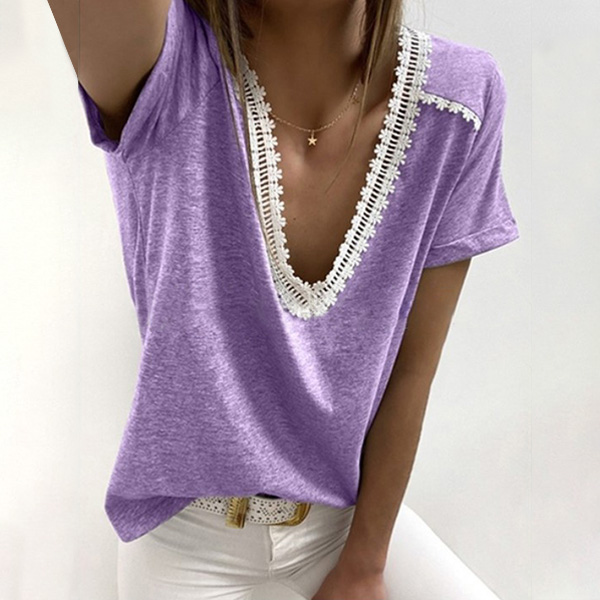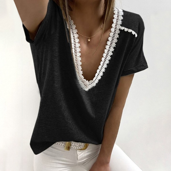 Sexy Lace Spliced Short Sleeve V-neck T-shirt