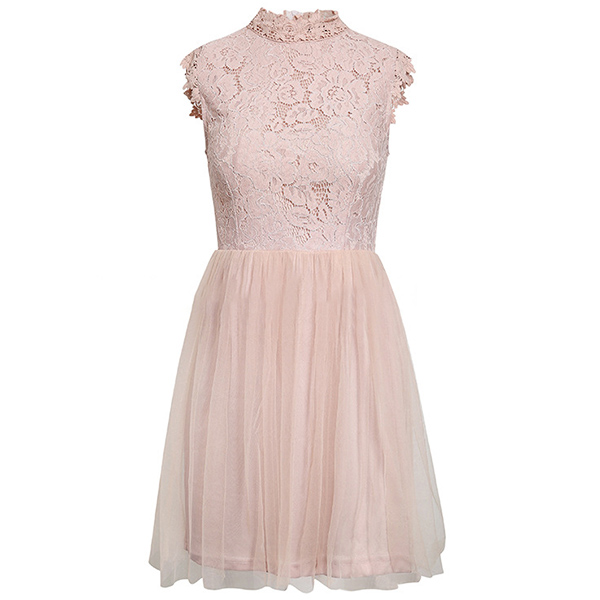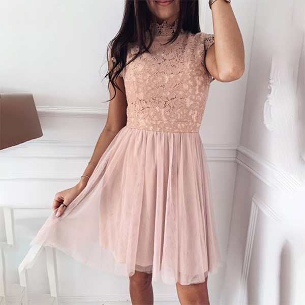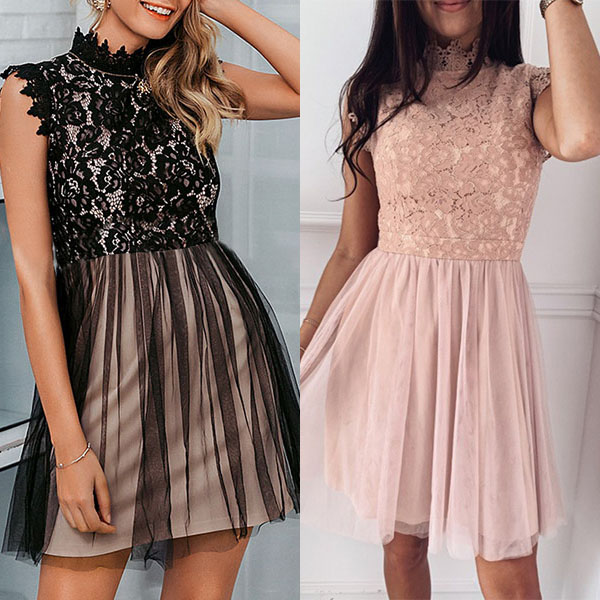 Don't know what to wear for your dinner dates and weekend gatherings? Then might we suggest you this piece? The lace spliced details can easily enhance your feminine appeal. Finished with sleeveless,mock neck and a clean,fit silhouette design,this dress knows how to express your beauty and femininity!