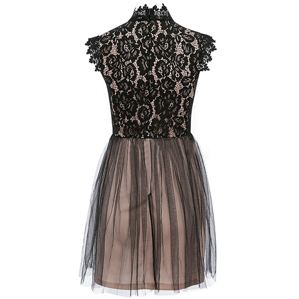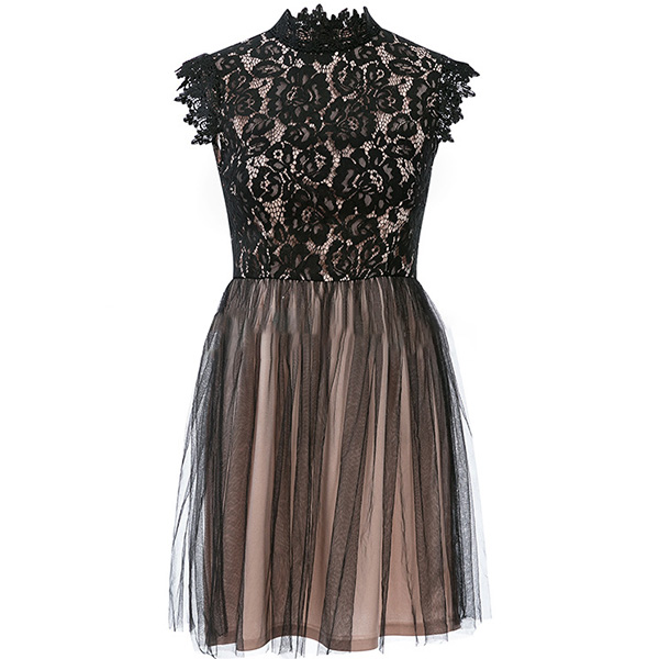 Sexy Lace Spliced Sleeveless Mock Neck Slim Fit Dress