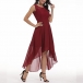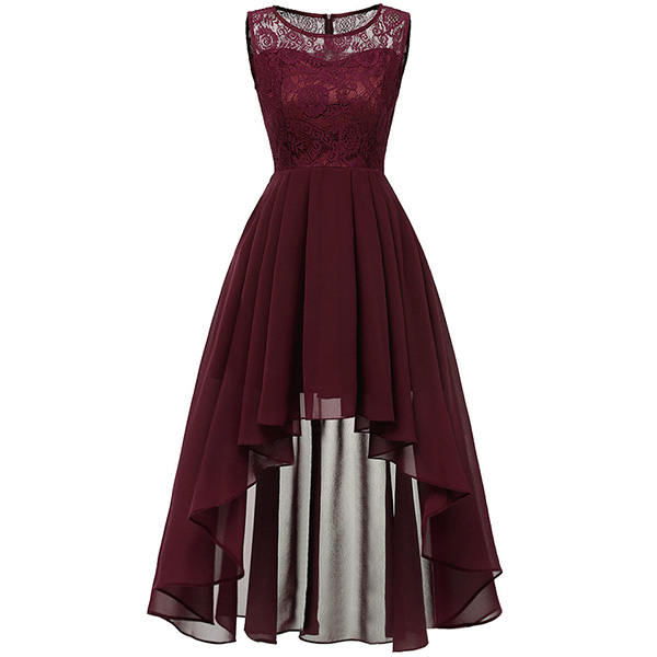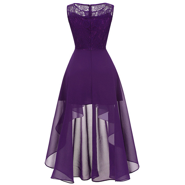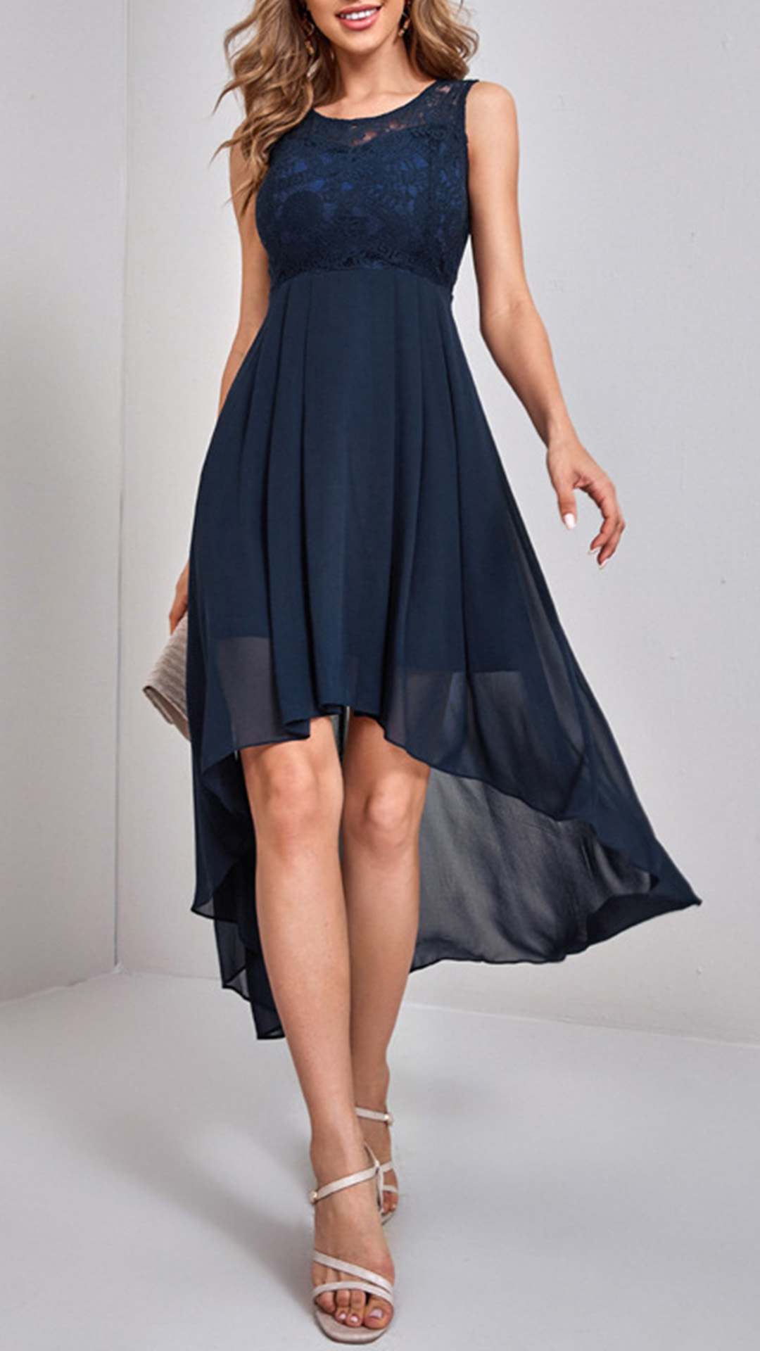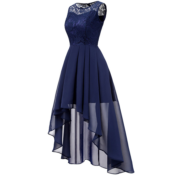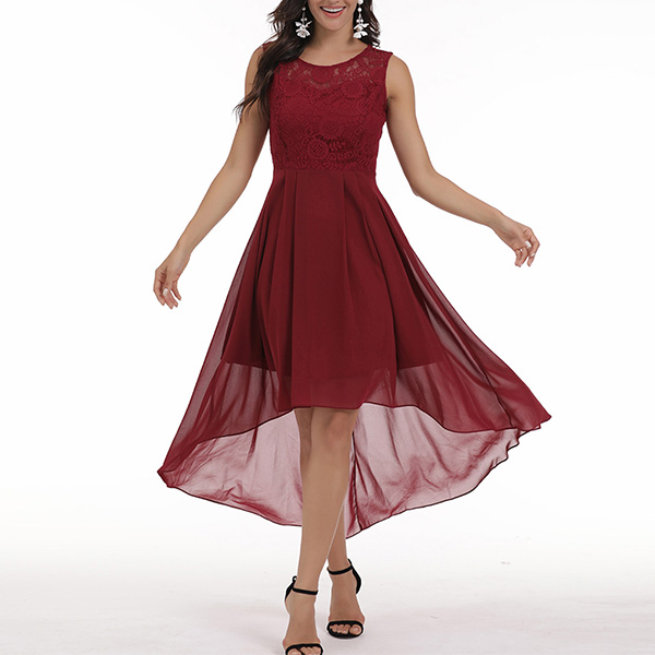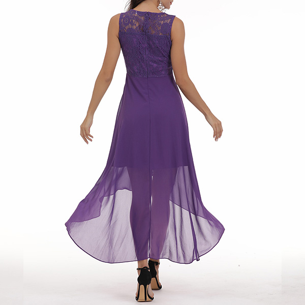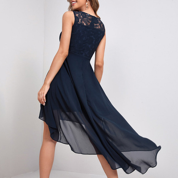 Sexy Lace Spliced Sleeveless Round Neck High-low Hem Chiffon Dress