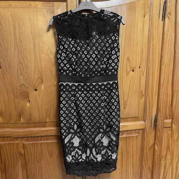 Sexy Lace Spliced Sleeveless Round Neck High Waist Slim Fit Hollow Out Dress