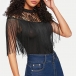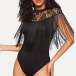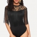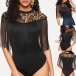 Sexy Lace Spliced Sleeveless Round Neck Tassel Bodysuit