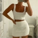 There is no wonder that you can easily be the focus when you dress yourself up with this two-piece set. Solid color style,including a sleeveless square collar crop top and a skirt,this two-piece set is a good weapon to flaunt off your sexy and seductive curve. If you wanna express your beauty and charm,you can just throw yourself into this two-piece set.