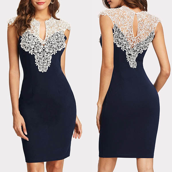 Sexy Lace Spliced Sleeveless V-neck Slim Fit Dress