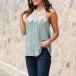 For these hot summer days,this cozy,stylish yet sexy sling top can easily arouse your attention. Its soft fabric and loose silhouette design can ensure you a cool and comfortable day,while the lace spliced details will enhance its entire charm. You can match with a shorts to have a stylish summer look.