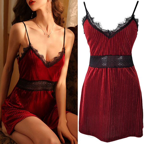 Sexy Lace Spliced Slip Nightwear Dress