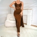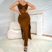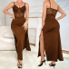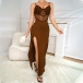 For a sexy and feminity look, you could try this dress! The lace-spliced design adds a delicate and romantic touch to the dress. While the high slit on the dress adds a seductive and daring element, perfect for special occasions or a night out.