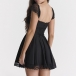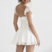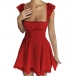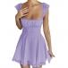 Sexy Lace Spliced Square Neck Cap Sleeve High-rise Mini Dress