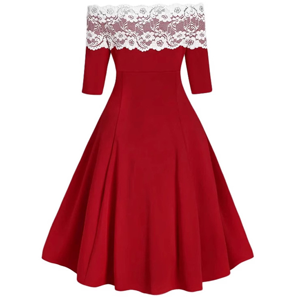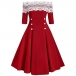 Sexy Lace Spliced Strapless Double-breasted Pleated Dress