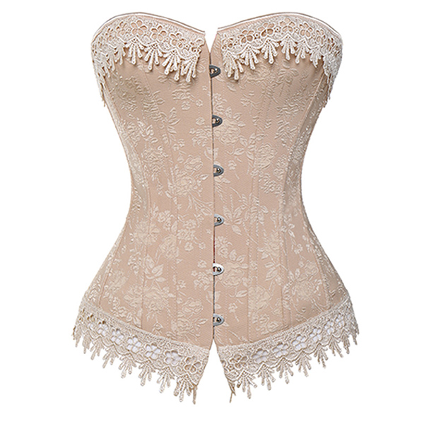 Crafted from exquisite floral jacquard fabric, this corset features a beautiful and intricate pattern that adds a sense of luxury and sophistication. The lace splicing details provide a delicate and romantic touch, while also adding a hint of allure. This corset is designed to enhance your curves and create a seductive silhouette. The strapless design showcases your shoulders and collarbone, adding a touch of femininity and elegance. The corset cinches at the waist, creating an hourglass figure and accentuating your curves in all the right places.