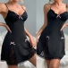 Sexy Lace Spliced Sweetheart Neckline Bowknot Nightwear Slip Dress