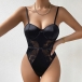 Sexy Lace Spliced Sweetheart Neckline Cinched Waist Cami Bodysuit
