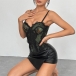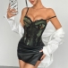 Sexy Lace Spliced Sweetheart Neckline Floral Printed Corset Cami Shirt