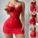 Sexy Lace Spliced Sweetheart Neckline Lace-up Semi-through Bodycon Nightwear Dress