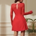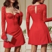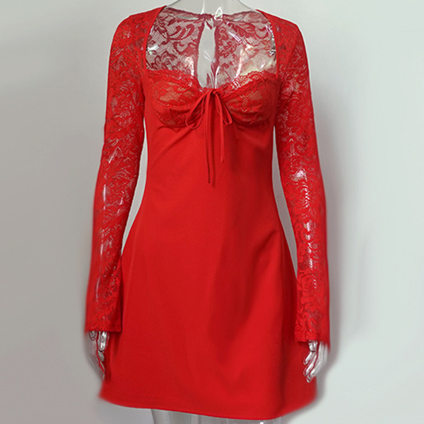 Sexy Lace Spliced Sweetheart Neckline Long Sleeve Mini Dress