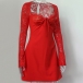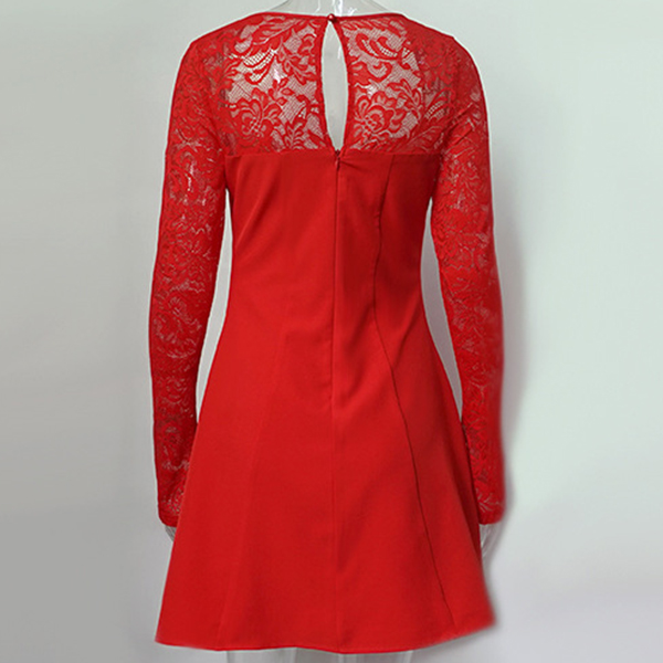Look at this red dress! The sweetheart neckline is flattering and feminine, while the lace splicing adds a touch of romance and glamour to the dress. The lace splicing adds a luxurious and intricate detail to the dress, creating a sense of elegance and style. Pair it with strappy heels and statement jewelry for a glamorous and sophisticated look.