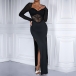 This is a stunning and alluring maxi dress that combines a lace spliced design, a sweetheart neckline, long sleeves, and a thigh-high slit for a sexy and glamorous look. Wanna have one?