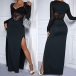 Sexy Lace Spliced Sweetheart Neckline Long Sleeve Slit Maxi Dress
