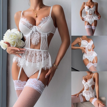 Sexy Lace Spliced Three-piece Lingerie Set